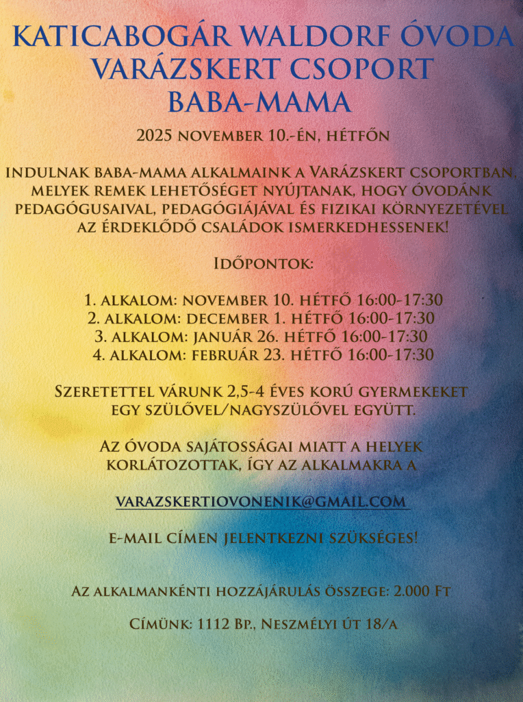 Jelentkezés a varazskertiovonenik@gmail.com e-mail címen.